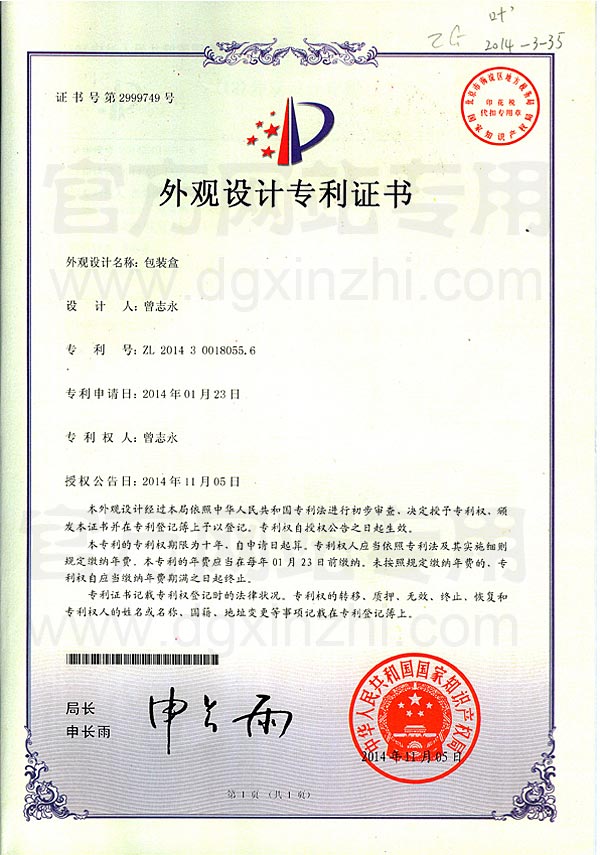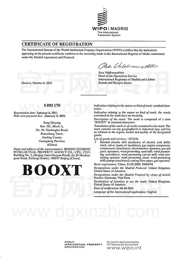國際知識產(chǎn)權(quán)組織(WIPO)認證證書